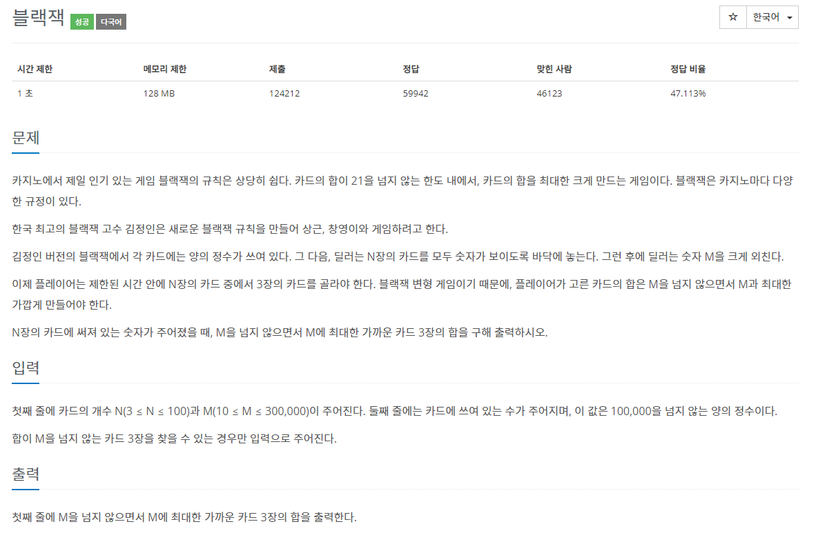2798번: 블랙잭