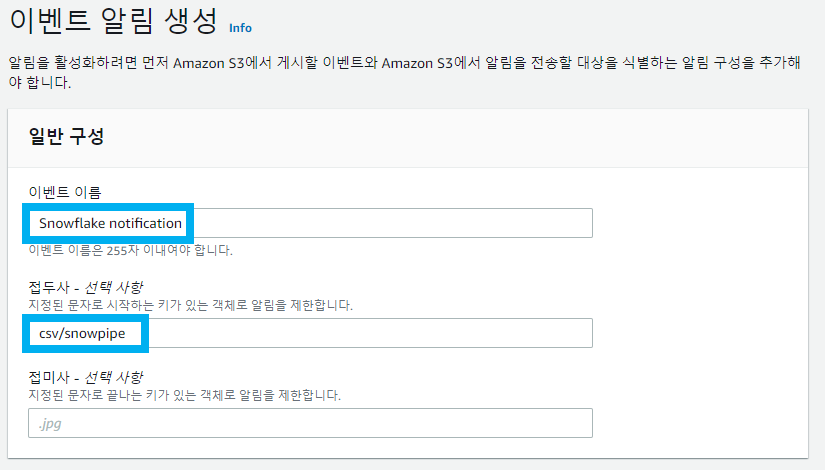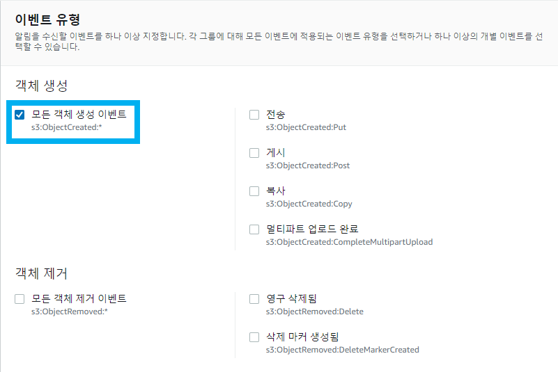 - 접두사 : 경로를 설정해 지정된 객체만 알림하도록 제한