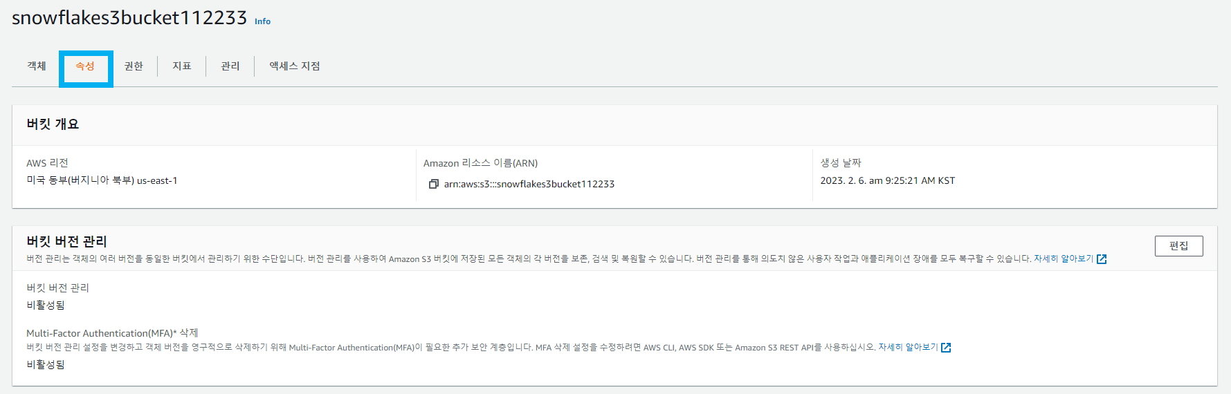 - 파이프 확인하여 notification_channel값 복사(S3에 데이터가 들어오는 이벤트를 감지하기 위해)