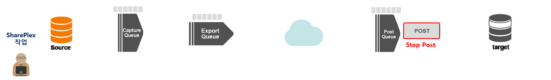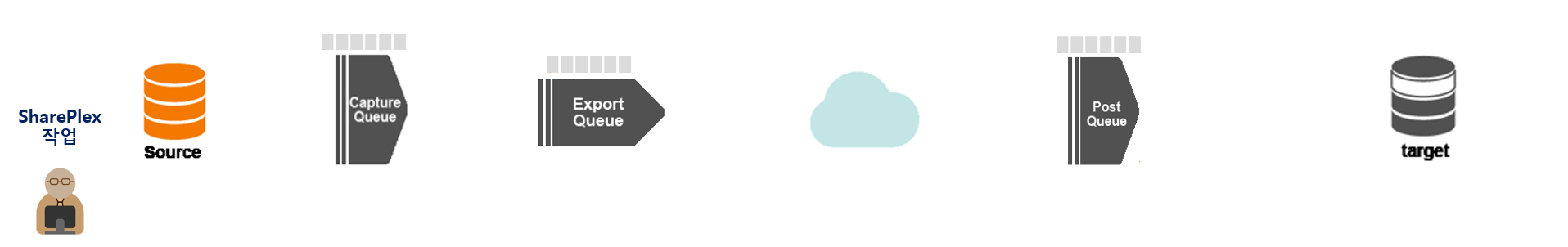 SharePlex : 데이터베이스의 Redo log를 읽어 변경사항(Change Data)을 추출(Capture)해 다른 데이터베이스에 SQL로 복원하여 실시간 복제하는 CDC(Change Data Capture) 솔루션