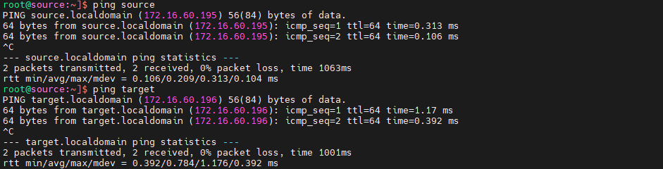 2-7. hosts 파일 수정(Source와 Target 네트워크 확인 : port 오픈, tcp 통신)