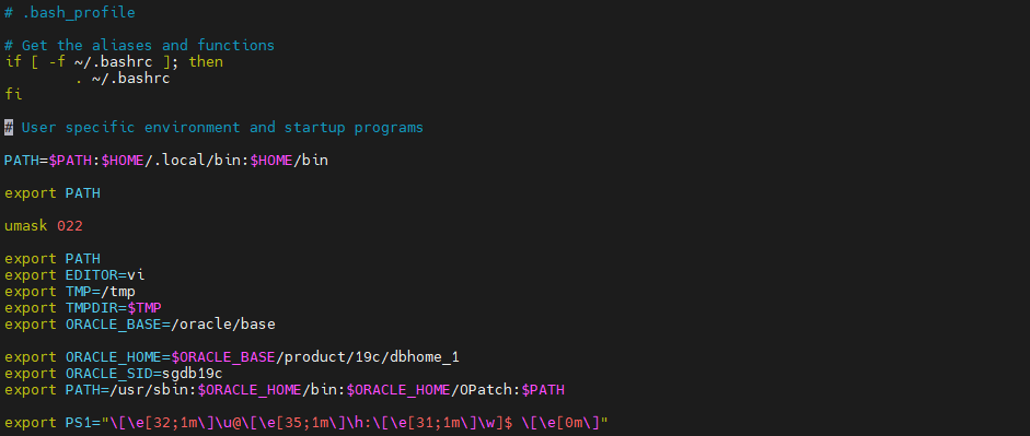 2-4. oracle 유저의 환경변수 확인(ORACLE_BASE, ORACLE_HOME, ORACLE_SID)