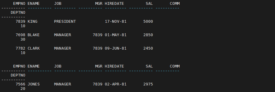 SQL> INSERT INTO emp VALUES(7698, 'BLAKE', 'MANAGER', 7839, TO_DATE('1981-05-01', 'yyyy-mm-dd'), 2850, NULL, 30);