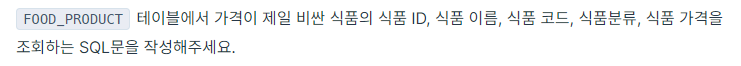 WHERE PRICE = (SELECT MAX(PRICE) FROM FOOD_PRODUCT);