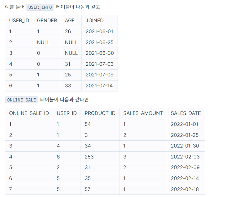 FROM USER_INFO A, ONLINE_SALE B