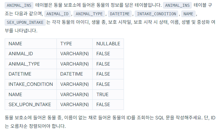 | [IS NULL] 이름이 있는 동물의 아이디 (0) | 2023.12.19 |
