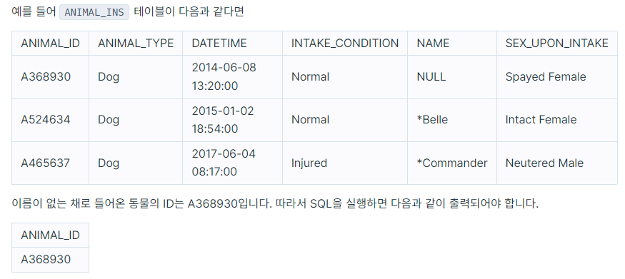 WHERE NAME IS NULL;'SQL > 프로그래머스' 카테고리의 다른 글