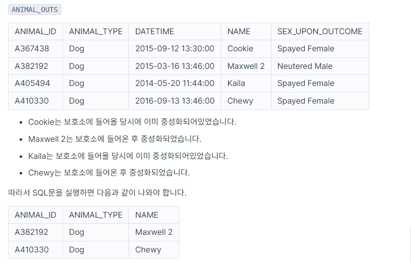 WHERE A.SEX_UPON_INTAKE != B.SEX_UPON_OUTCOME;'SQL > 프로그래머스' 카테고리의 다른 글