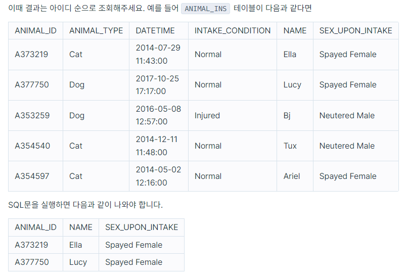 ORDER BY ANIMAL_ID;