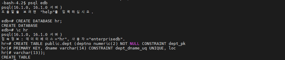 edb=# CREATE DATABASE hr; -- hr 데이터베이스 생성