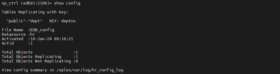 NOTE: Replication slot edbslot will be created in database after successful config activation.