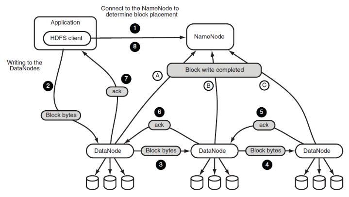 이후 네임 노드는 클라이언트에게 해당 파일 블록들을 저장할 데이터 노드의 목록 반환