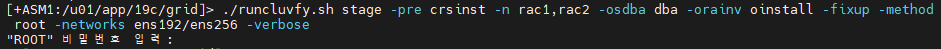 ./runcluvfy.sh stage -pre crsinst -n rac1,rac2 -osdba dba -orainv oinstall -fixup -method root -networks ens192/ens256 -verbose