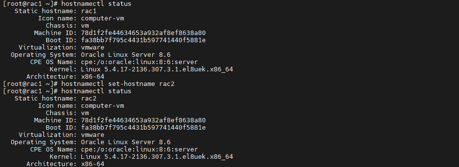 # hostnamectl set-hostname rac2