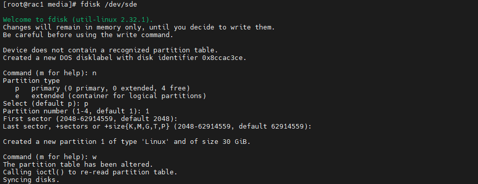 # fdisk /dev/sde