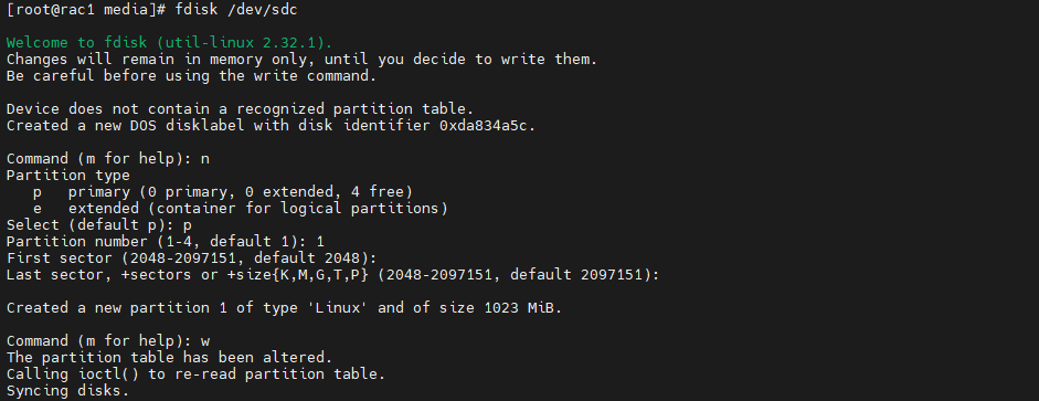 # fdisk /dev/sdc