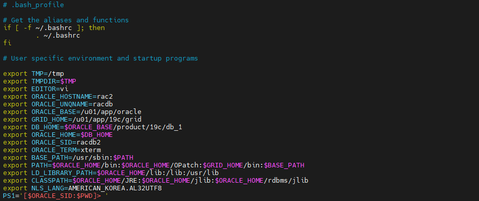 -- 2번 노드 oracle 프로필 변경