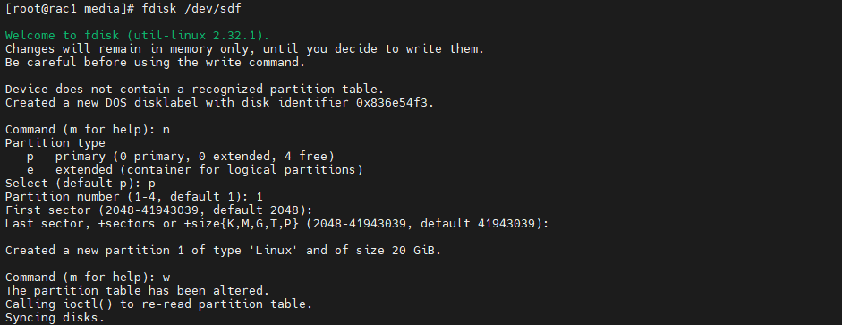 # fdisk /dev/sdf