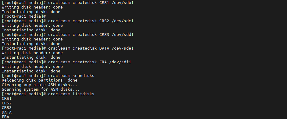 # oracleasm createdisk FRA /dev/sdf1