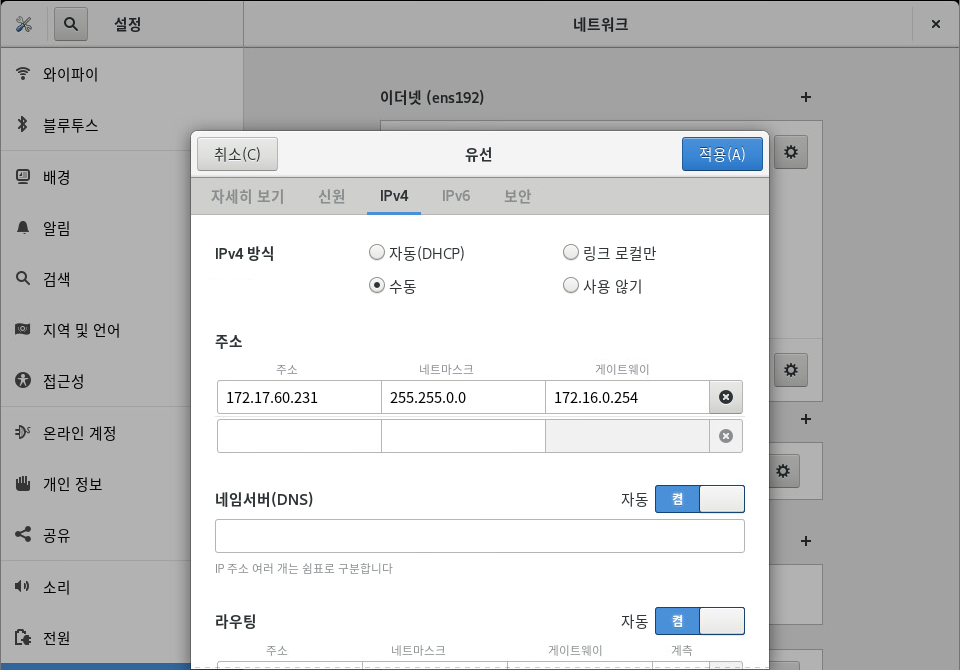 1번 노드 2번째 네트워크 설정