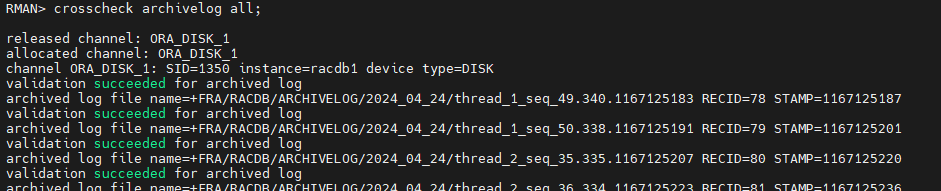 RMAN> crosscheck archivelog all;'Oracle' 카테고리의 다른 글