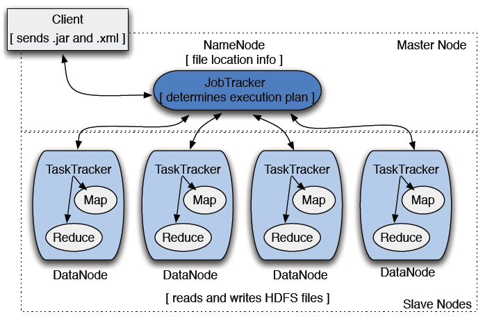 클라이언트 : 분석하고자 하는 데이터를 Job의 형태로 JobTracker에게 전달
