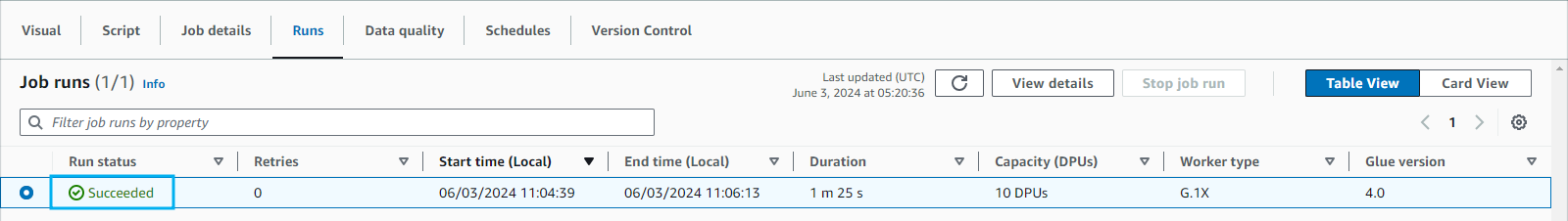 job이 성공한 것을 확인할 수 있습니다.