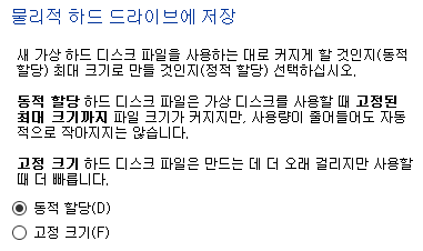 6) 물리적 하드 드라이브에 저장을 설정해준다.