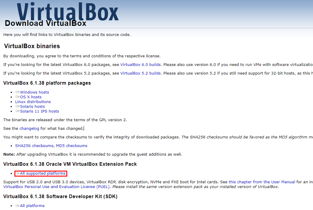 2) 같은 버전의 VirtualBox Extension Pack도 다운 받는다.