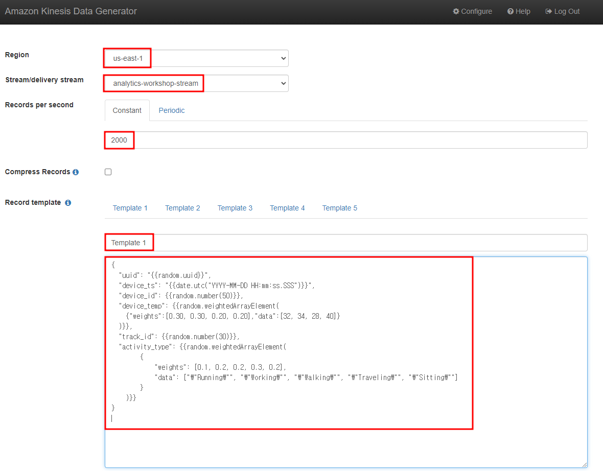 다음과 같은 Kinesis Data Generator 툴이 열리게 된다.