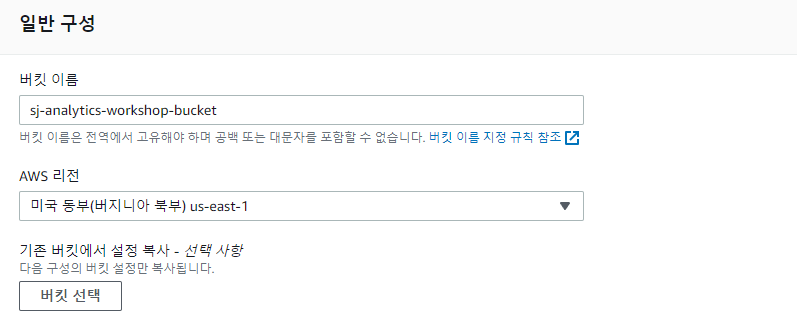 버킷 : sj-analytics-workshop-bucket