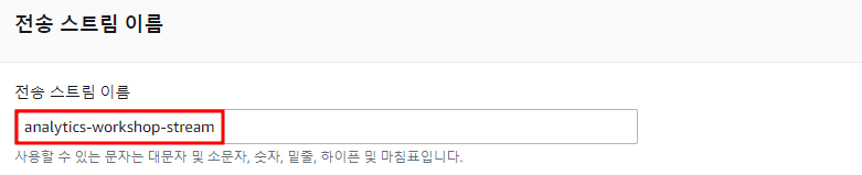 - 스트림 이름 : analytics-workshop-stream