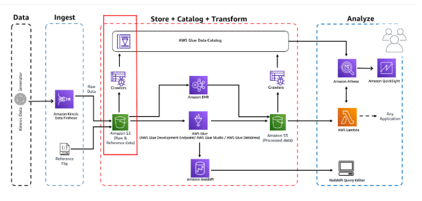 Amazon Glue : 원본 데이터에서 크롤러를 정의하여 테이블 형태로 AWS Glue data catalog를 채운다.