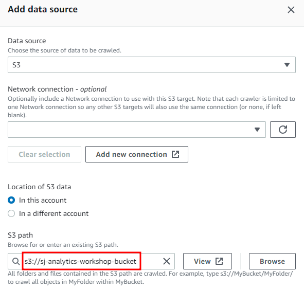Browse를 선택하여 전에 생성한 버킷을 선택