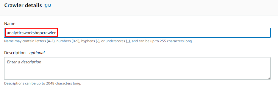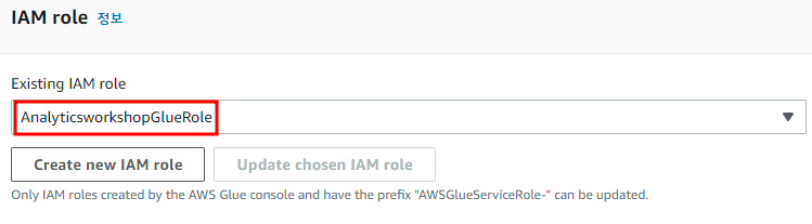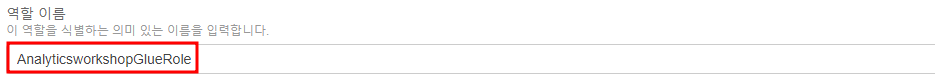 - 역할 이름 : AnalyticsworkshopGlueRole