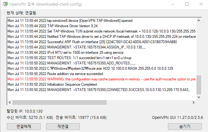 10. Open VPN GUI 어플에서 클라이언트 구성 파일 열기(연결)