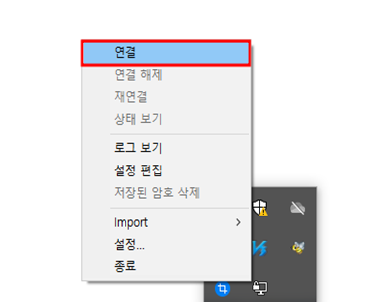 Open VPN GUI 어플을 열고 위에서 편집한 클라이언트 구성파일을 파일 불러오기를 통해 열어준다.