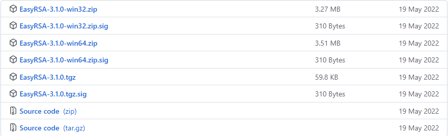 https://github.com/OpenVPN/easy-rsa/releases으로 접속해서 해당하는 운영체제로 다운을 받는다.