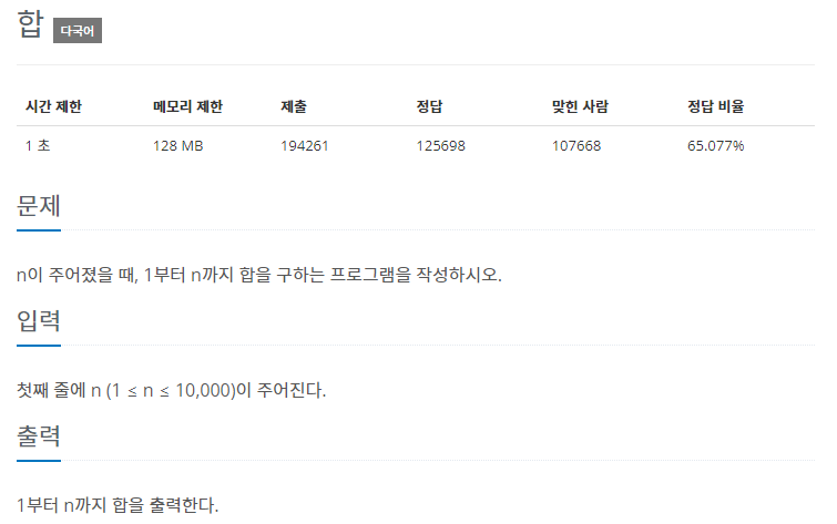 n이 주어졌을 때, 1부터 n까지 합을 구하는 프로그램을 작성하시오.