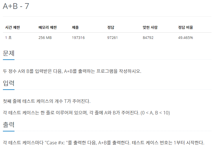 print(f"Case #{ls}:", a+b)'Python > Baekjoon' 카테고리의 다른 글