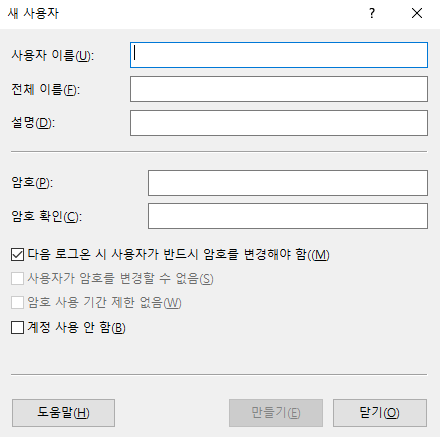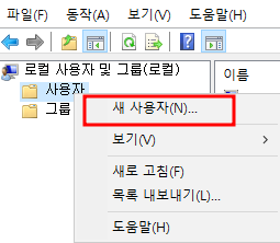 사용자를 우클릭하면 새 사용자를 생성할 수 있다.