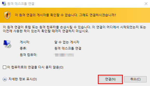 위에서 다운받았던 RDP파일을 열면,