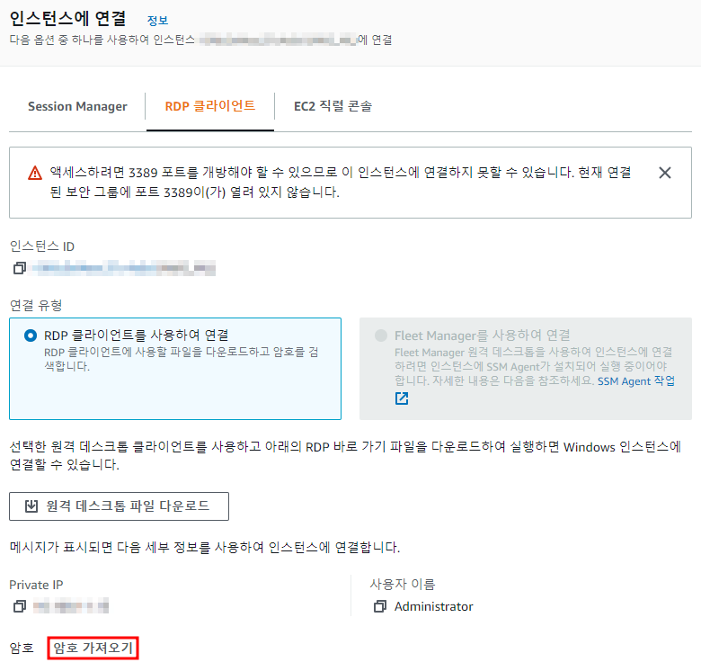3. AWS EC2에 접속하는 RDP파일 다운로드