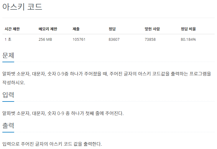11654번: 아스키 코드