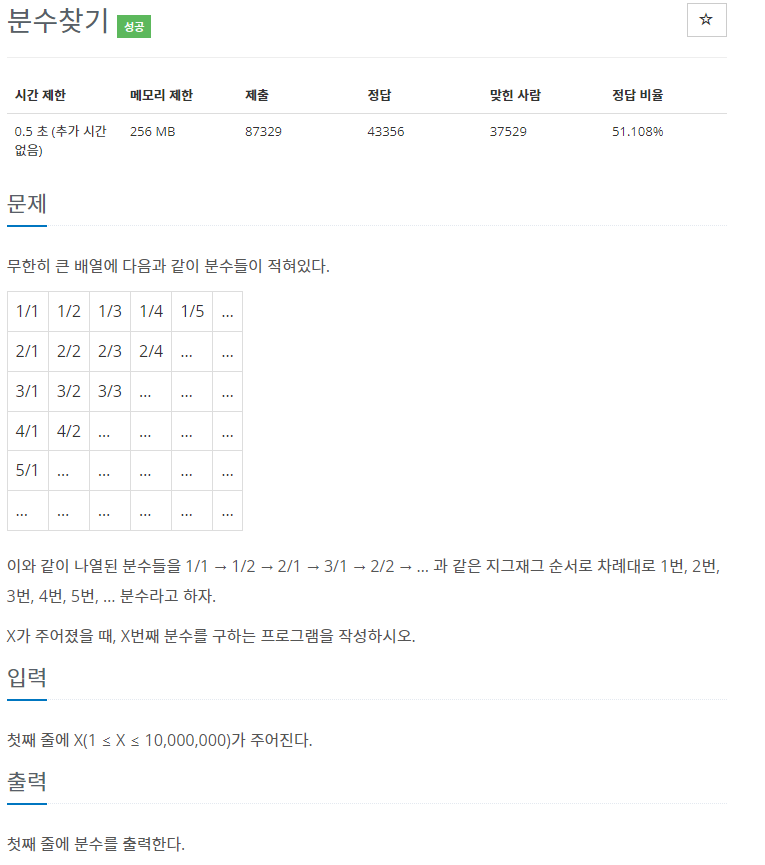 1193번: 분수찾기