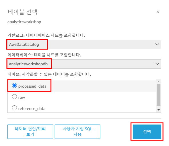 - Athena를 사용하여 Amazon Quicksight에서 대시보드/시각화를 구축