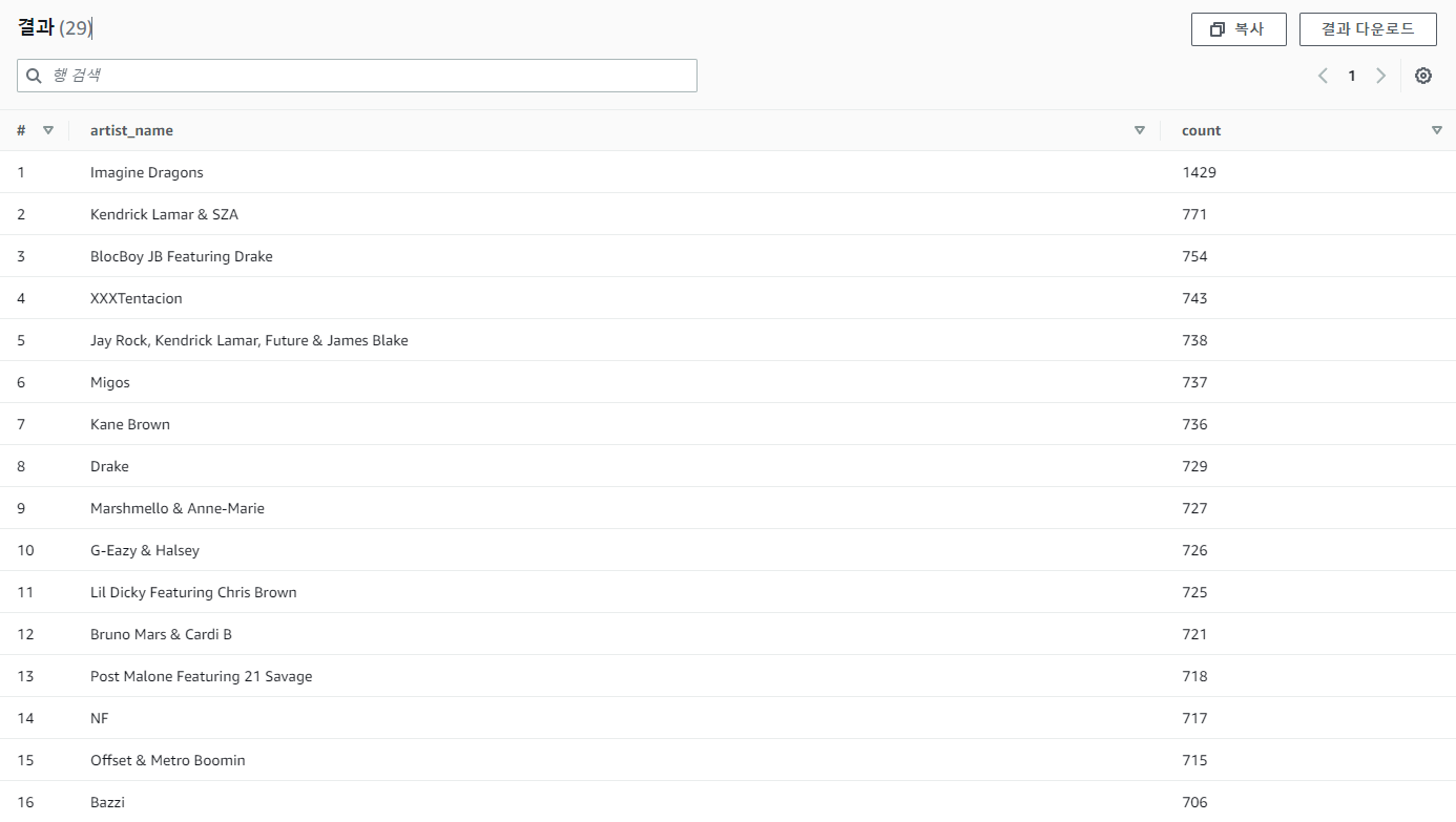 - 그룹화 기준 : artist_name