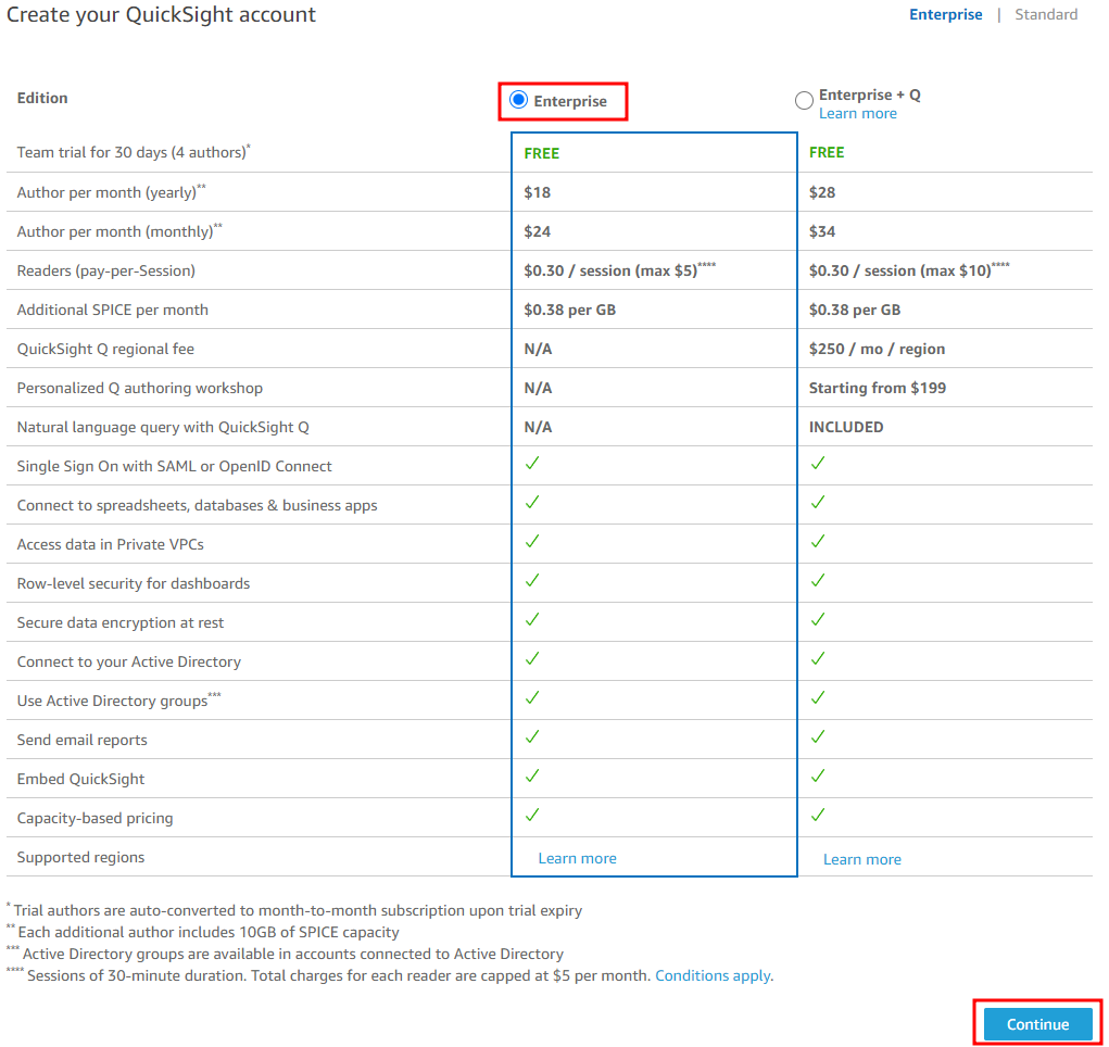 - Enterprise 선택 후 Continue 클릭