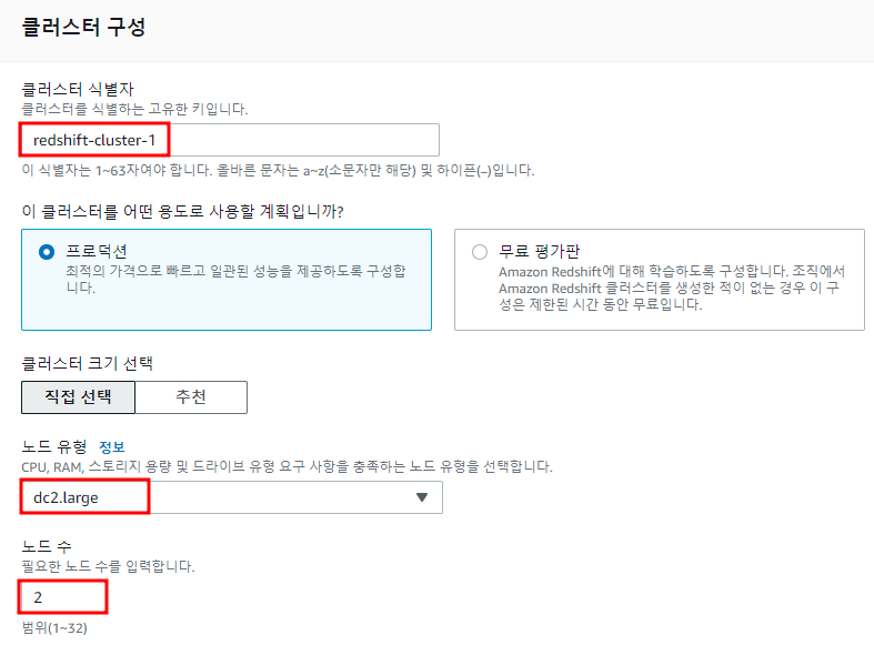 - 이 클러스터를 어떤 용도로 사용할 계획입니까? : 프로덕션