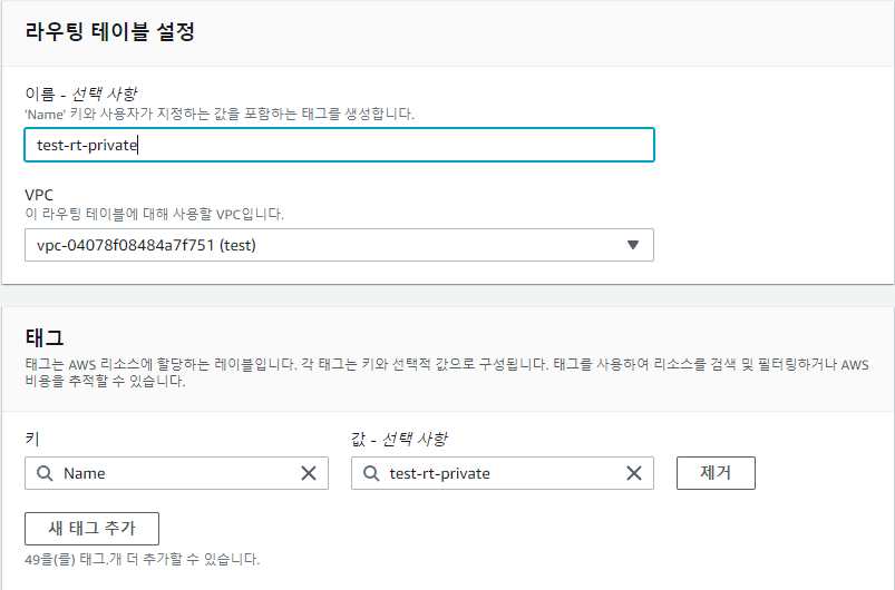 Private subnet과 연결할 라우팅 테이블